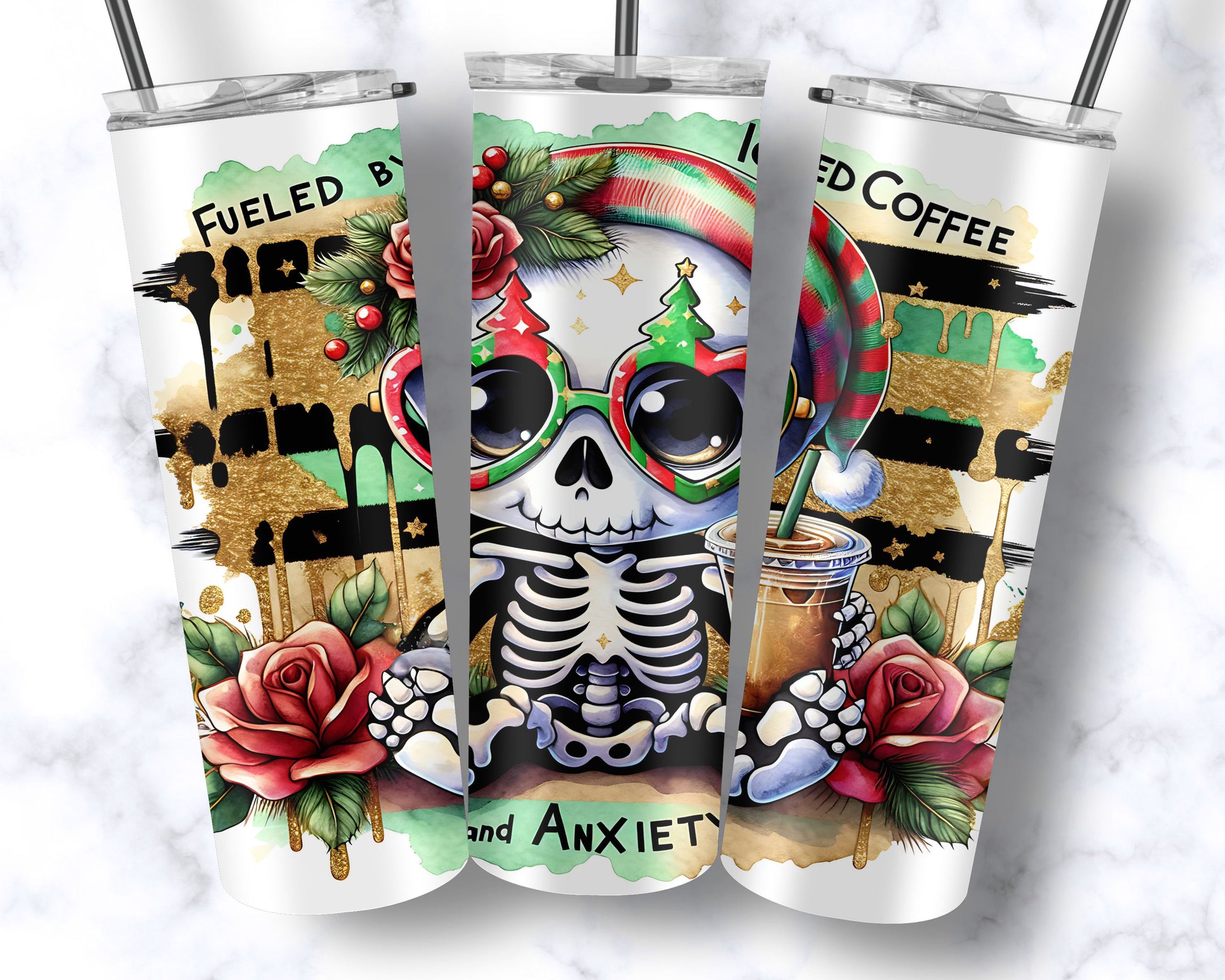 Surviving the holidays one sip at a time! Our Anxiety and Iced Coffee Christmas Tumbler is perfect for anyone who fuels their festive chaos with caffeine and a sense of humor.